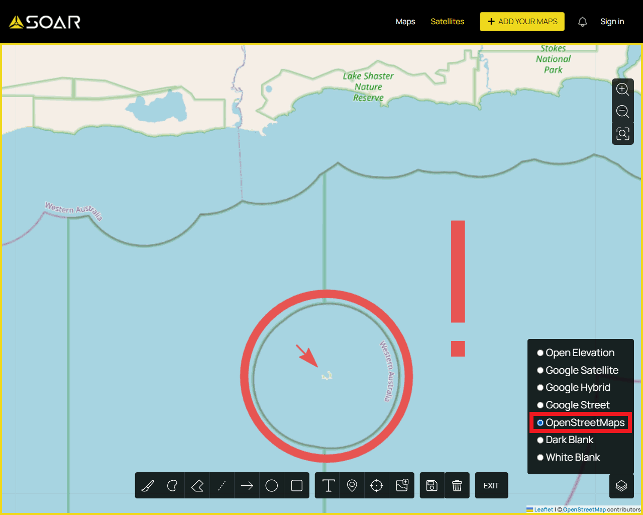 Next, we decided to take a look with our eye from the sky, using Soar’s access to various satellites. It looks a bit like… Well, we have an inkling as to why this island might have been censored!